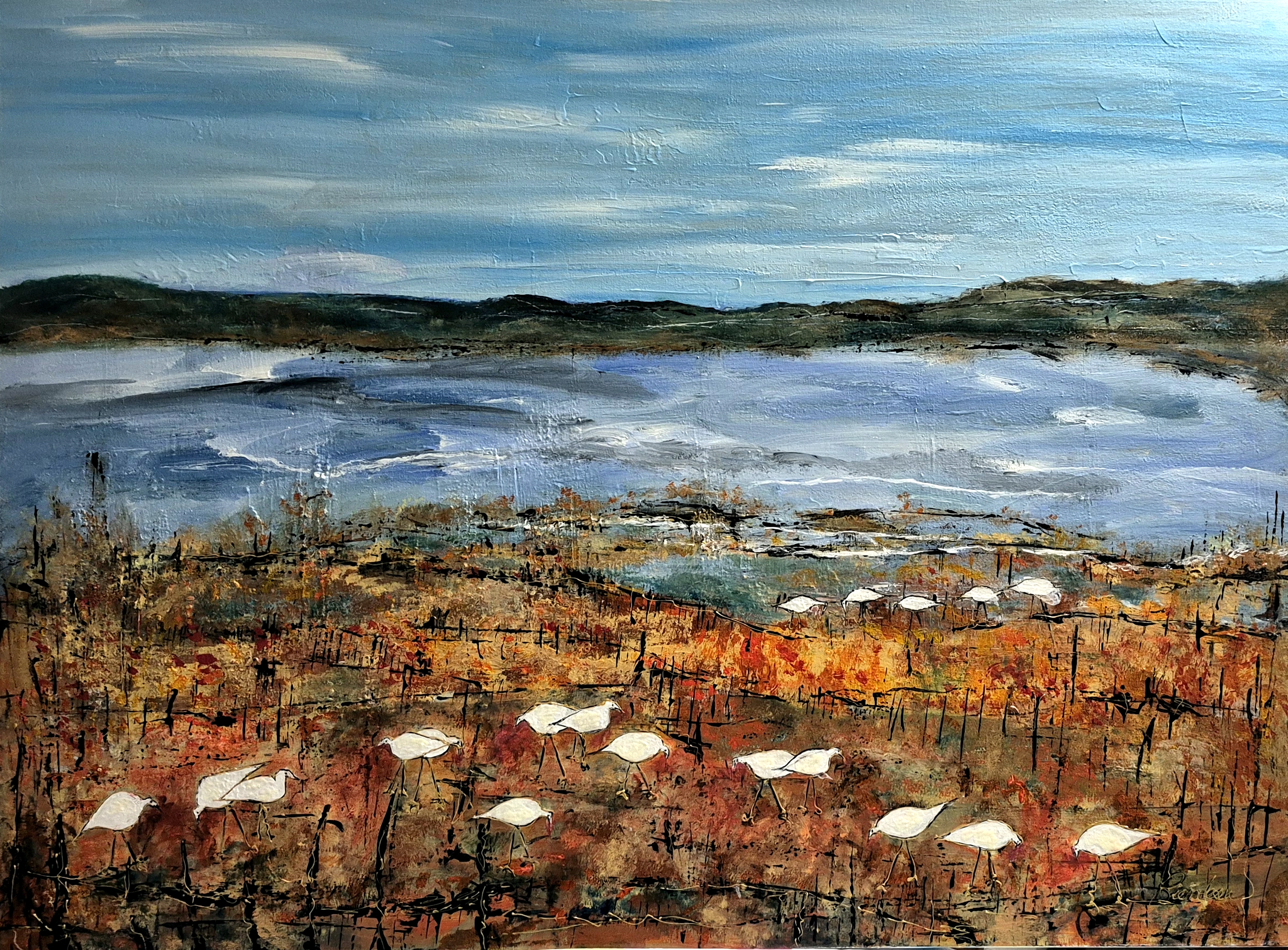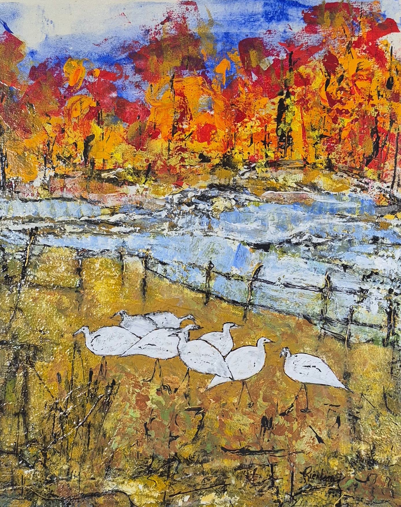 Magnificence des Oies Matin frisquet sur la Ville 20X16 Même les oies aiment l’Hiver 16X20 Fantaisies Automnales 24X24 Le bonheur est dans le Pré 20X20 Avant le Départ 24X36 Sur les Berges 20X20 Dans les herbes Hautes 30X40 Le Pacte du Retour 20X16 Parade Nuptiale 36X28 Je me sens bien auprès de toi 20×16 Peuples Migrateurs V 60 X 20 (vendu) Prendre du Bon Temps 20X16 (vendu)